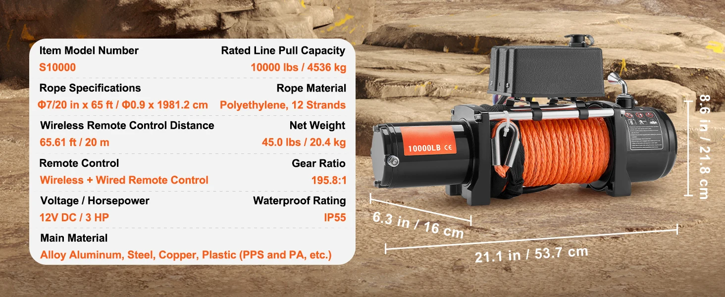 Power that Gets You Out of Any Jam: Our truck winch is driven by a 12V DC/3HP permanent magnet copper motor, delivering consistent power when you need it most. Featuring an advanced 3-stage planetary gear system and a 195.8:1 gear ratio, this winch ensures powerful pulling capacity, even in harsh weather and the deep mud. Get ready to tackle any challenge with confidence!