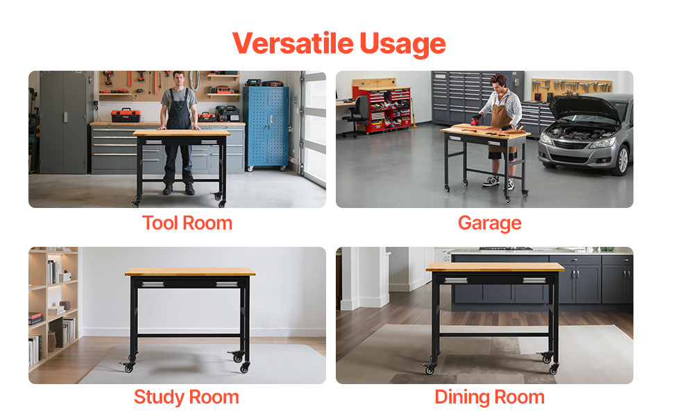 Versatile Applications: Imagine a workspace that does it all! This 48" x 24" workshop bench transforms into your go-to station for woodworking, gaming, computer work, or even dinner parties. It's the ultimate multitasker, fitting perfectly in garages, workshops, gardens, homes, and offices – wherever your creativity takes you.